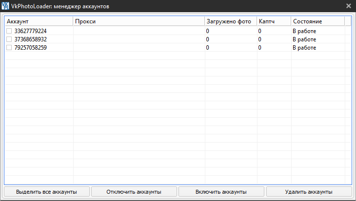 7. Три режима смены аккаунтов во время работы:- Новый аккаунт на каждую группу, последовательно (в каждое сообщество фотографии будут загружаться со следующего аккаунта в списке авторизованных)