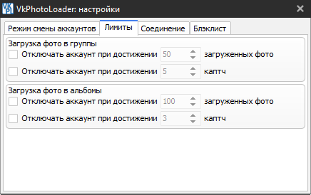 6. Возможность указать лимиты отдельно для каждого аккаунта:- Лимит загрузок (при достижении аккаунтом указанного количества загрузок программа сможет отключить этот аккаунт от работы)