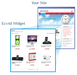 Ecwid - это удобная система управления интернет-магазином. Она позволяет импортировать товары из excel-файла или добавить их в визуальном редакторе, отобразить каталог товаров не только на Вашем сайте, но и в блоге, странице на Facebook, MySpace, VKontakte, настраивать скидки, доставку, принимать платежи через банк или электронные системы, вести учет клиентов.