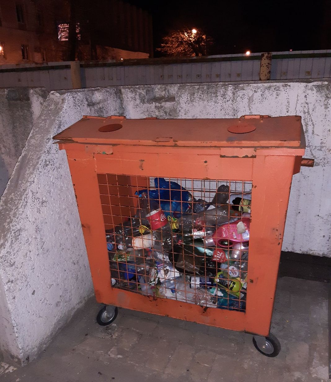 К вечеру прихожу… В общем, эффект превзошел все ожидания. Мало того, что клетка-контейнер высотой 2 м доверху набита, так еще и вокруг полно бутылок (как потом оказалось, младшие школьник играли в «баскетбол» и почистили все окрестности школы, особенно спортплощадку!). Когда жэковец такое увидел, чуть не упал.