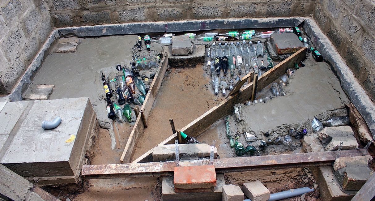 Еще одно применение бутылок в строительстве - тёплый пол в бане. Это народное ноу-хау появилось благодаря своей хорошей теплоизоляции, доступности и простоте.