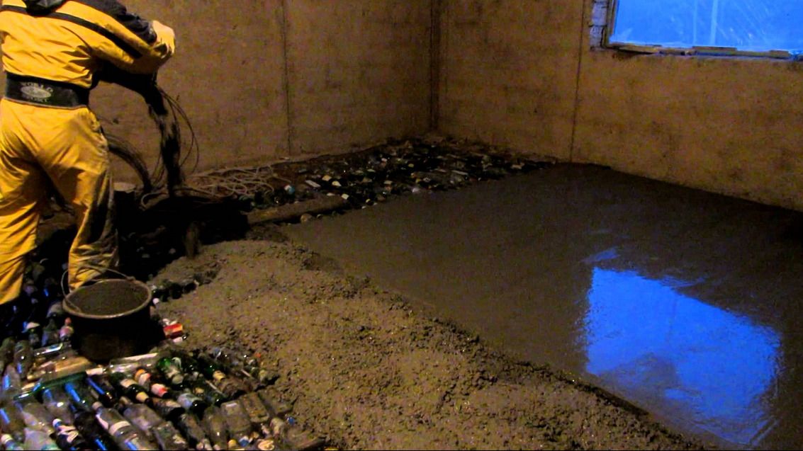 Бутылками утепляется исключительно бетонный пол. Называть его «тёплым» не вполне корректно, ведь стеклянная тара не является источником теплоты. Её функция — энергосбережение. С этим использованные стеклянные сосуды справляются превосходно, а для банного помещения это особенно актуально.