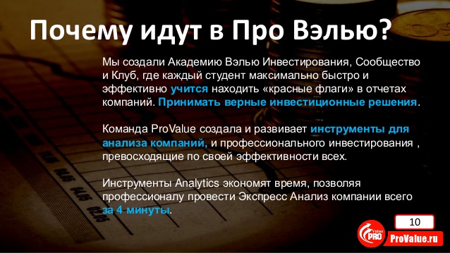 • Введение в ProValue Analytics. Графики и метрики. Принципы эффективного Экспресс Анализа акций.