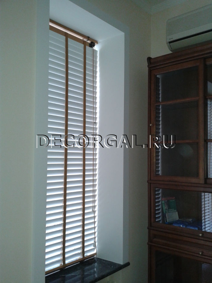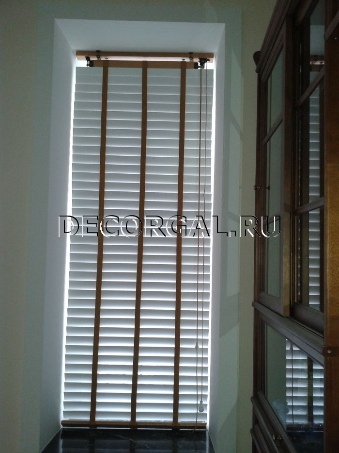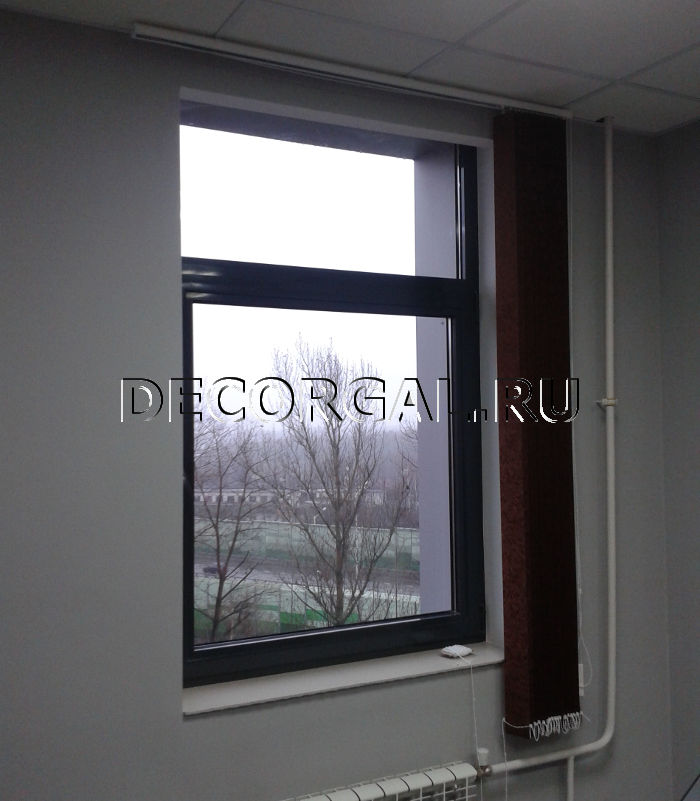 Кассетные шторы Uni-2 установлены на каждую створку в отдельности. Пластиковые кассеты закреплены непосредственно на раме.
