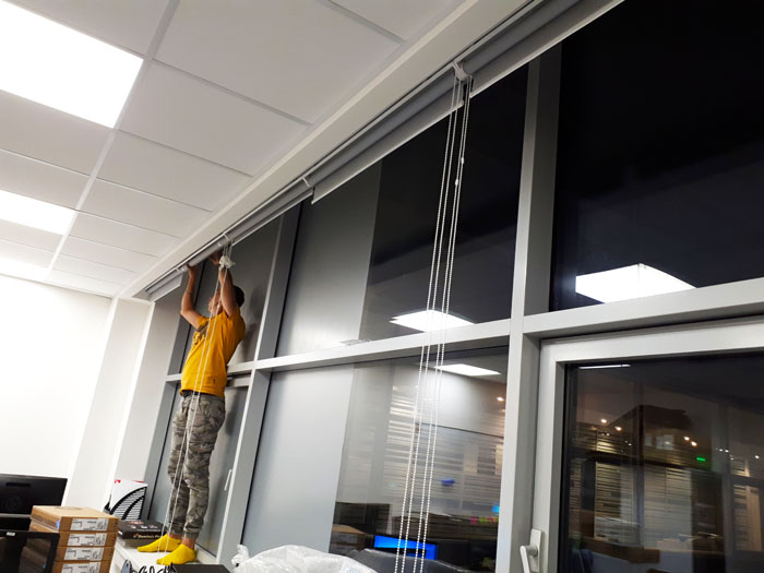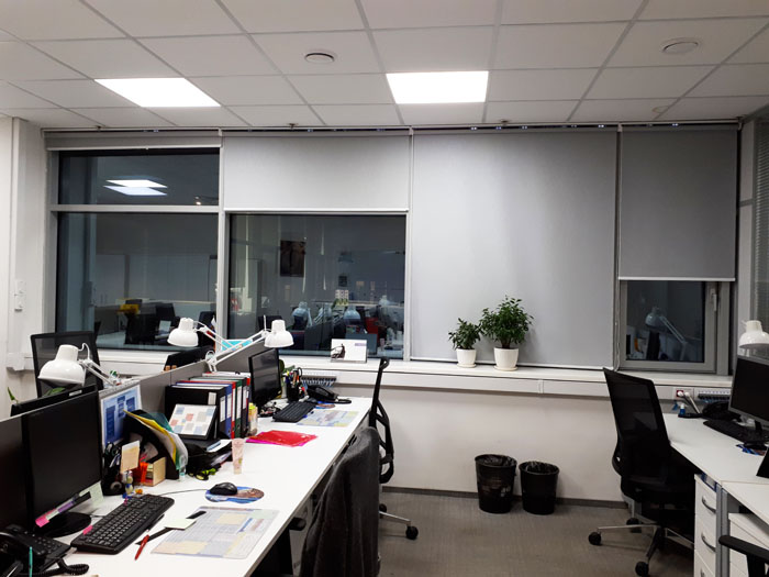 В этом проекте заказчик решил оформить заявку на рулонные шторы Uni-2, а от нас требовалось подобрать цвет и плотность ткани, доставить изделие на объект и установить солнцезащитную систему на пластиковые окна. На фотографиях Вы можете ознакомиться с процессом монтажа и изделием, а мы немого расскажем о кассетной рулонной системе Uni-2, как проходят работы и какие различия между системой Уни-1 и Уни-2.
